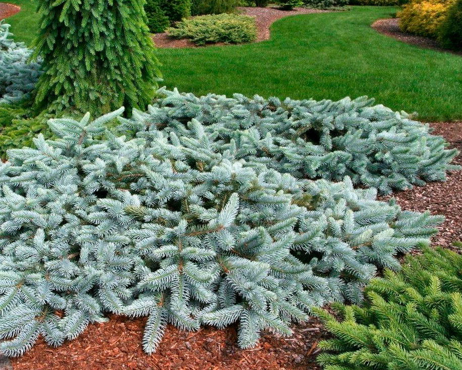 Компактная, карликовая форма плакучей ели с серебристо-голубой хвоей. Идеальна для рокариев, альпийских горок и контейнеров.