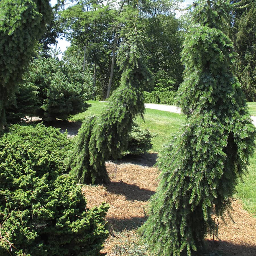Кроме знаменитой 'Глаука Пендула', мы предлагаем редкие и эффектные сорта елей — для ландшафта, который не останется незамеченным.